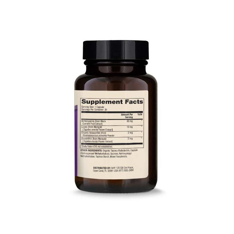 Lutein Komplex Forte kombinuje čtyři přirozeně se vyskytující rostlinné karotenoidy a polyfenoly v jedné kapsli: lutein, zeaxanthin, astaxanthin a antokyany z černého rybízu. Všechny složky jsou získávány z přírodních zdrojů – z květů měsíčku lékařského, mikrořasy Haematococcus pluvialis a plodů černého rybízu.