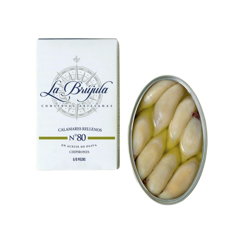 Malé kalamáry v olivovém oleji La Brújula patří mezi nejvyhledávanější španělské delikatesy. V každé konzervě najdete 6–8 kusů ručně čištěných kalamárů z galicijských zálivů, naložených pouze do kvalitního olivového oleje.